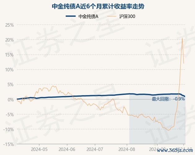 本站音尘,10月9日,中金纯债A最新单元净值为1.2471元,累计净值为1.4089元,较前一交游日下降0.26%。历史数据清晰该基金近1个月下降0.76%,近3个月下降0.34%,近6个月高涨0.89%开云·体育平台(开云kaiyun)(中国)官网入口登录,近1年高涨2.94%。该基金近6个月的累计收益率走势如下图: